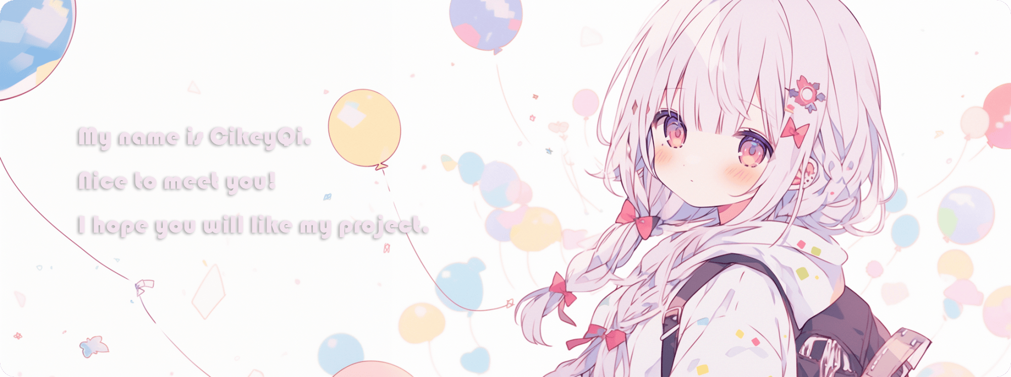 | ✨ Ciallo ~(∠・ω< )⌒☆ 🔭 I am a high school student. 😽 Turned 17 / Neko / Draw / Play stupid. 🌱 I’m currently learning Kotlin, Python, JavaScript, Docker. 📫 How to reach me: 🌟QQ Group / E-mail / QQ / Telegram. |