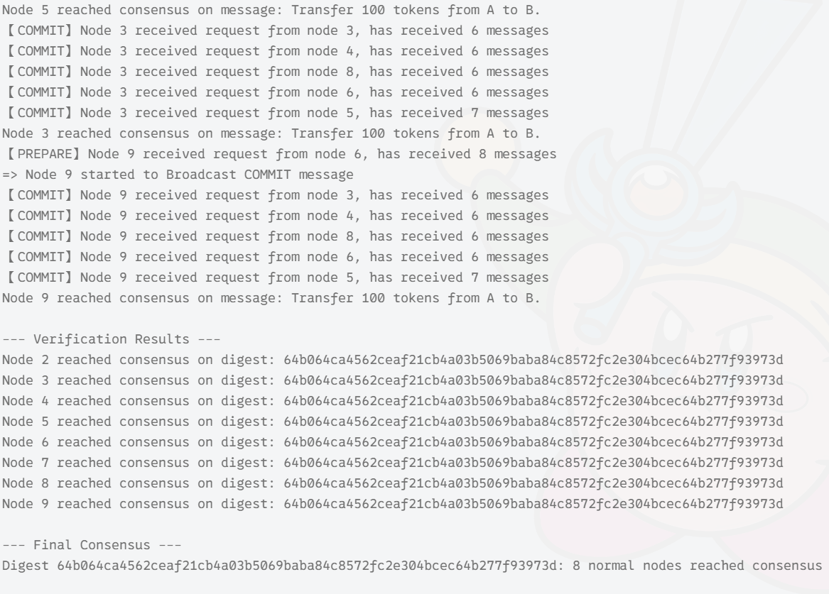 COMMIT: 节点广播,当收到消息数大于 2*f+1 时,节点进入响应阶段