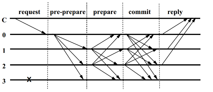 - 主节点默认为可信节点,即没有 view change 过程