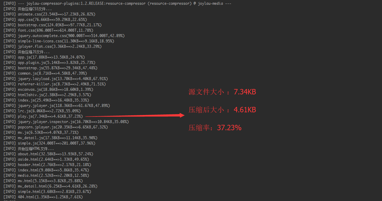 例如 :[INFO] common.js(8.71KB==>4.58KB,47.39%)