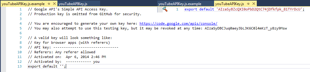 You will need to modify the example key files located in the [/js/background/key/](https://github.com/MeoMix/StreamusChromeExtension/tree/Development/src/js/background/key) directory. Copy `youTubeAPIKey.js.example`, rename it to `youTubeAPIKey.js` and replace the example API key with your own. Production keys are not committed to GitHub. The example key provided should not be relied upon for anything other than testing and it may be revoked without warning. You are strongly encouraged to generate your own key. Ensure that the property 'localDebug' is set to **false** unless you have configured an instance of Streamus' server on your local machine. The localDebug property can be found at [/js/background/application.js](https://github.com/MeoMix/StreamusChromeExtension/blob/Development/src/js/background/application.js). 1. Navigate to **chrome://extensions/** 2. Ensure the checkbox labeled **Developer mode** is enabled. 3. Click the button labeled **Load unpacked extension...** 4. Select the directory **/StreamusChromeExtension/compiled** (Note: this directory won't exist by default. See Compiling code for more details) Test cases may be ran by navigating to chrome-extension://jbnkffmindojffecdhbbmekbmkkfpmjd/test.html, but only after the extension package has been loaded into Google Chrome. Alternatively, tests may be ran through grunt via `grunt test`Streamus uses a fair number of third-party JavaScript libraries. Introduction of additional libraries for off-the-shelf functionality is discouraged. Non-core libraries may be removed in the near future and additional functionality should not be implemented with them.