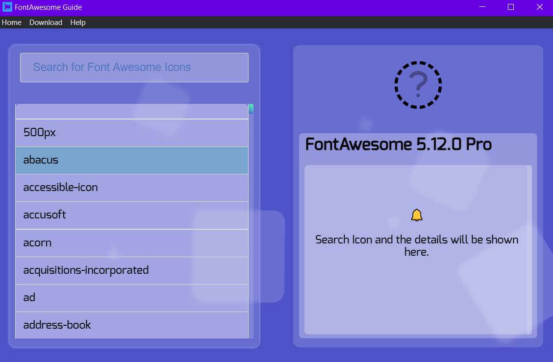 This App is created to check the available and the appearance of Font Awesome Icons (12.5.0 Pro). It has no intention of infringing copyright (FontAwesome).