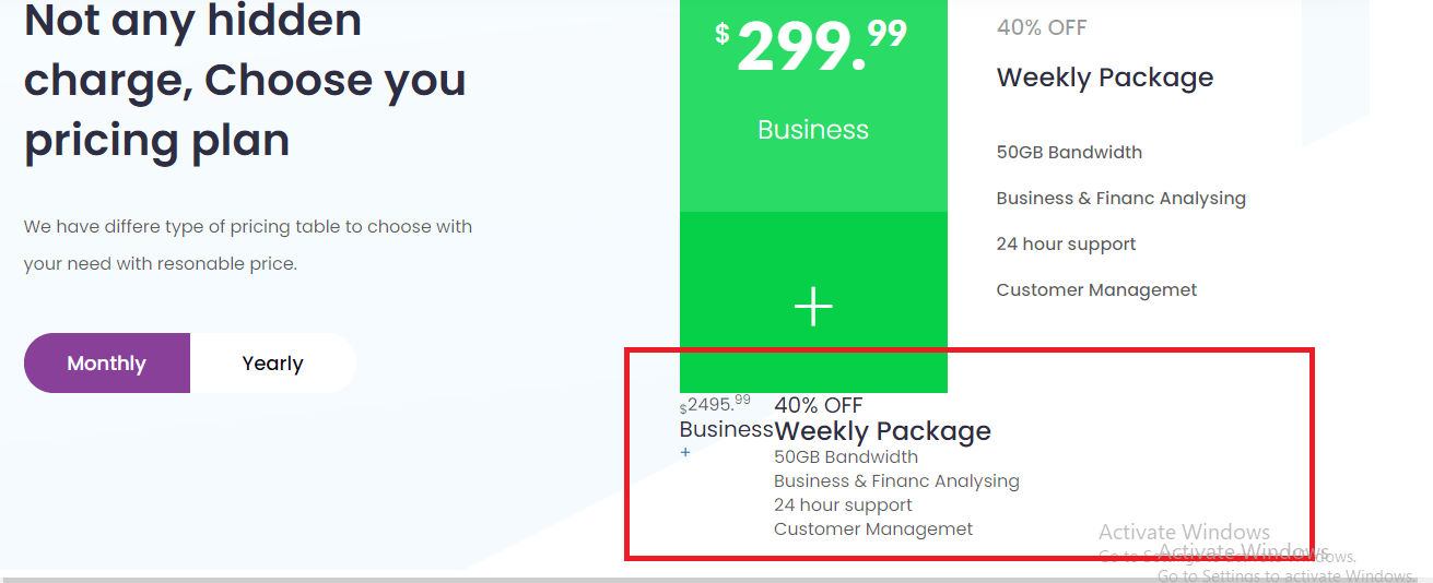 When we click the yearly or monthly button on pricing plan section the pricing plan on the right side is not working. It always remain the same.