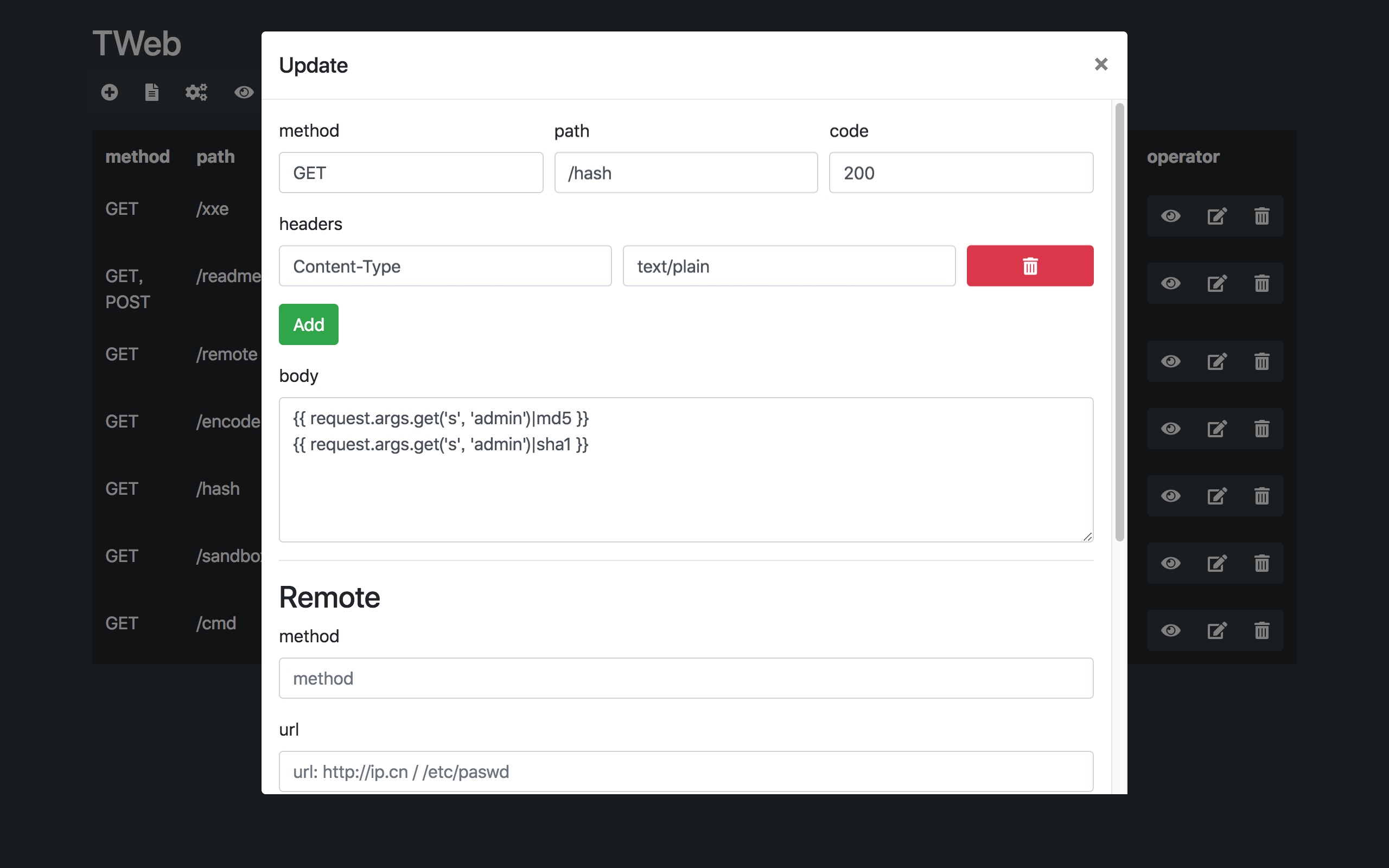 - 创建任意HTTP响应(自定义请求方法、路径、状态码、请求头)