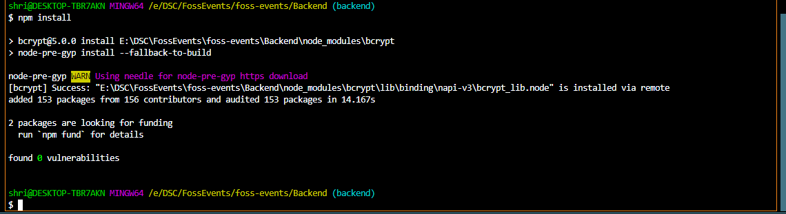 .envfile in theDB_CONNECTvariable - Install node dependencies using: