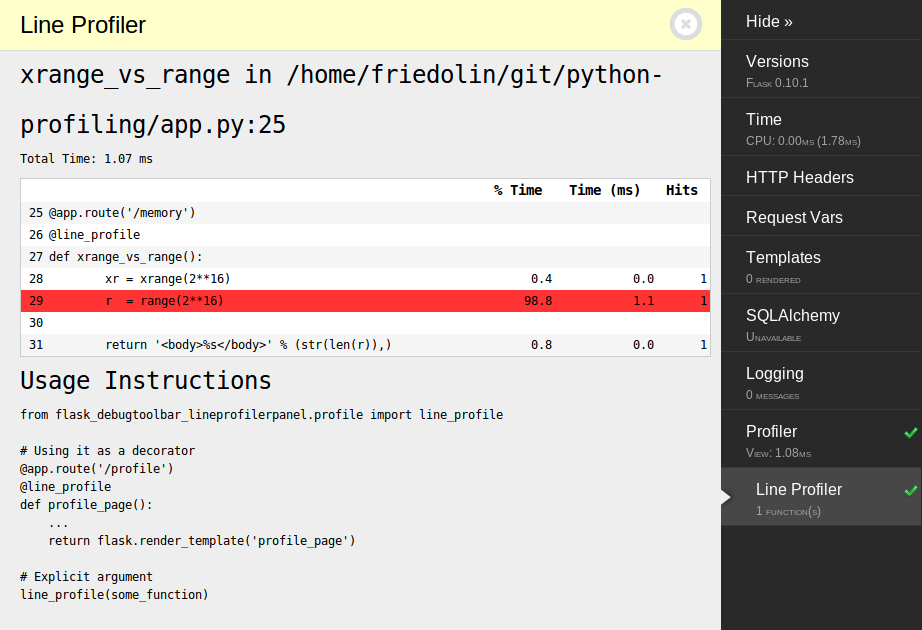 1    0.015    0.015    1.099    1.099 /home/friedolin/git/python-profiling/app.py:17(hello_world)