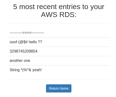 It's a simple Flask app that writes and reads from a database. It uses Amazon RDS for the database backend, but you can make things even simpler and use a local DB.