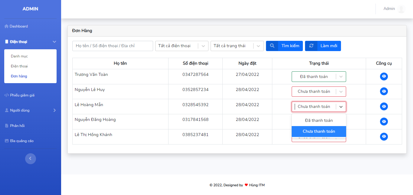 - Thống kê số lượng khách hàng, nhân viên, điện thoại.