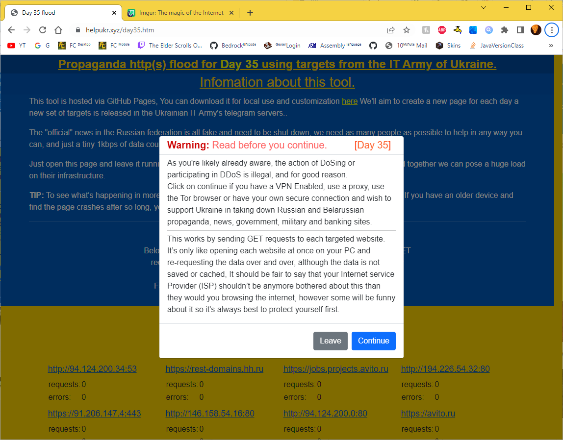 Each day a new page will be made based on the targets set by the IT Army of Ukraine, you can run this on pretty much any device that can run a browser, that includes phones, tablets, game consoles and of course, computers. If you have lots of mobile data to spare you can go out to town for example and help flood these sites from your pocket! :tw-1f606: