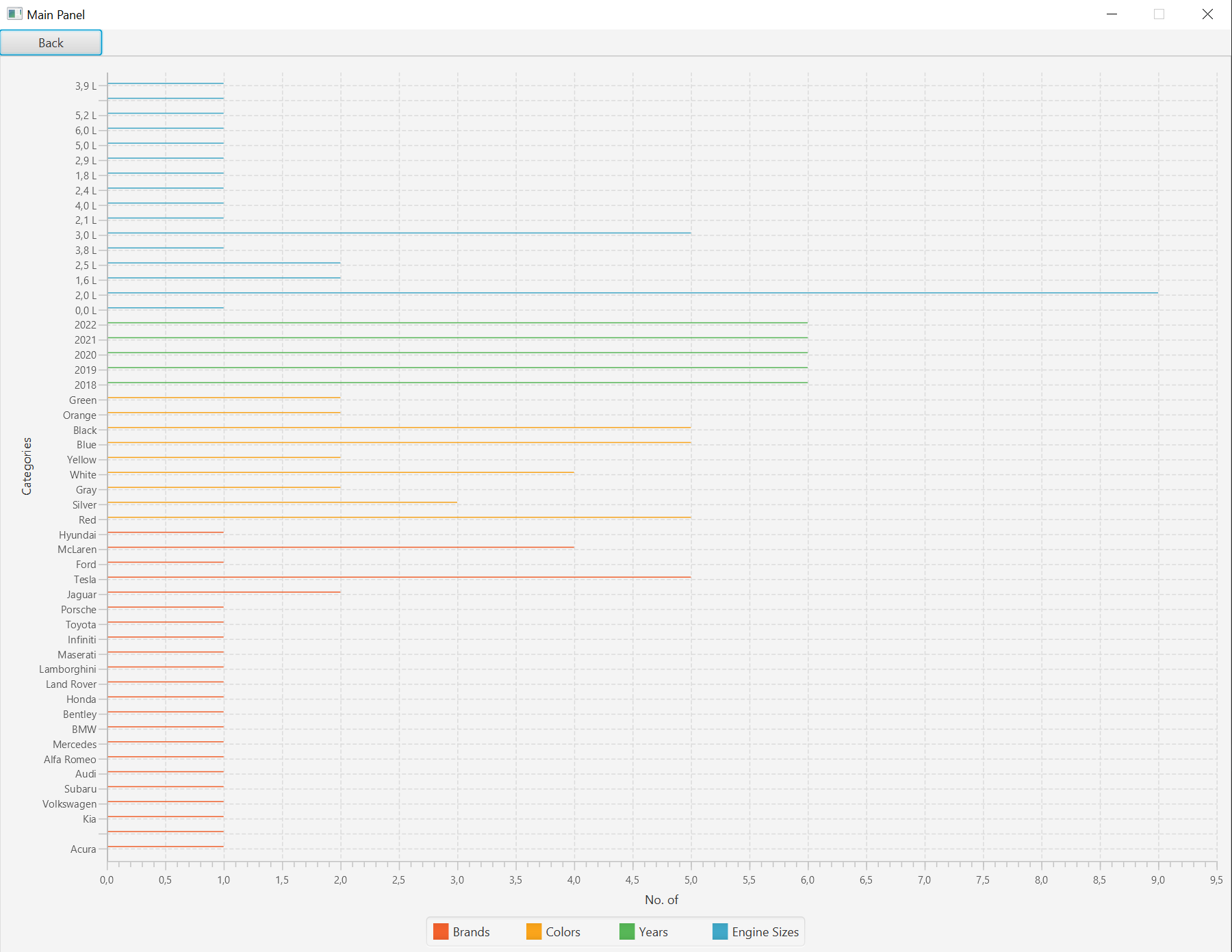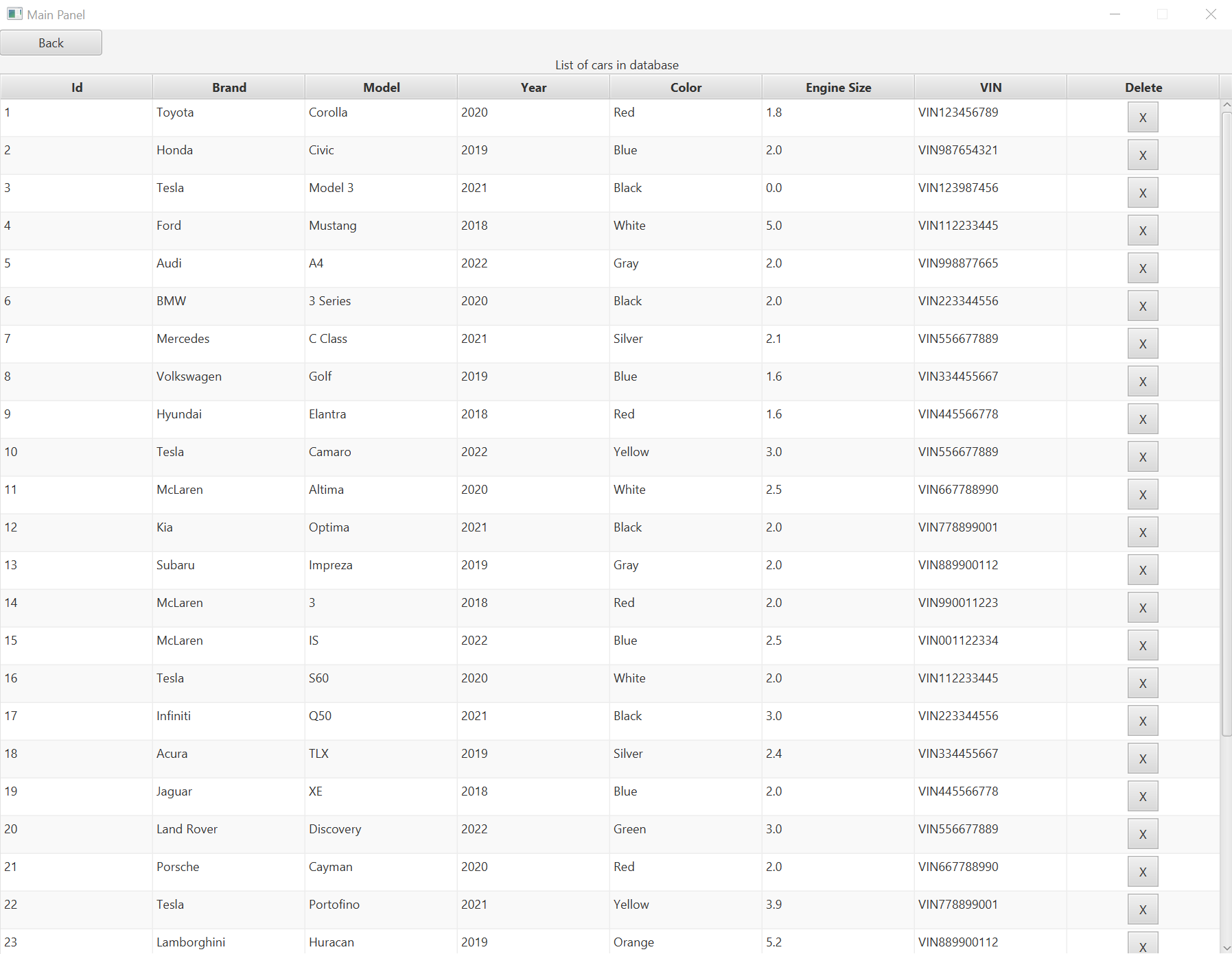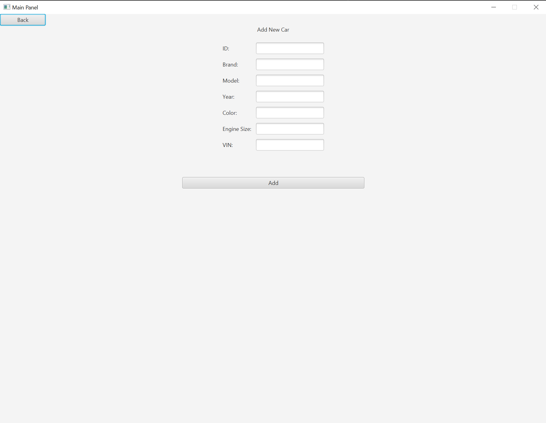 The project is a representation of a car management system GUI. It includes various functionalities such as adding new car records, viewing a list of cars, and displaying car statistics. All data presented within the application is purely exemplary and is intended to illustrate the potential look and feel of a fully implemented system.
