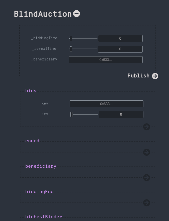 autogenerated interactive form for solidity smart contracts
