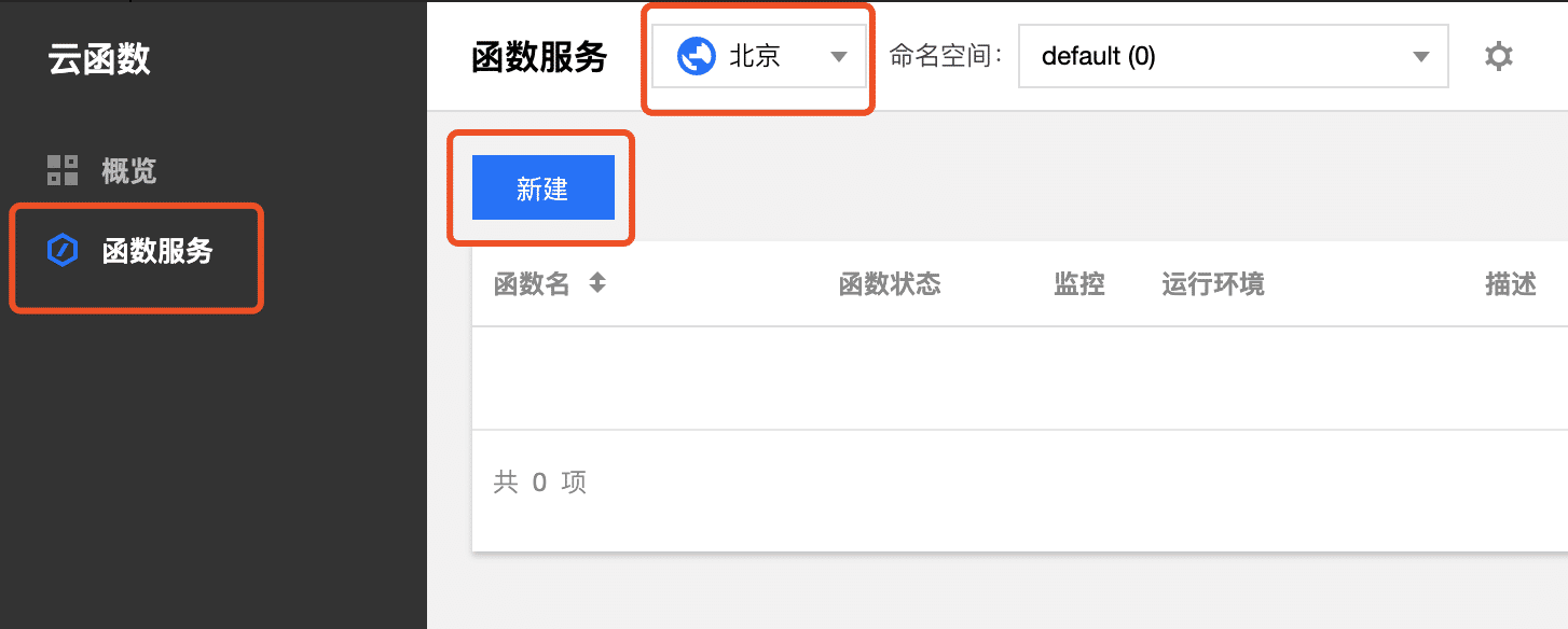 - 单击左侧导航栏【函数服务】,进入“函数服务”页面。