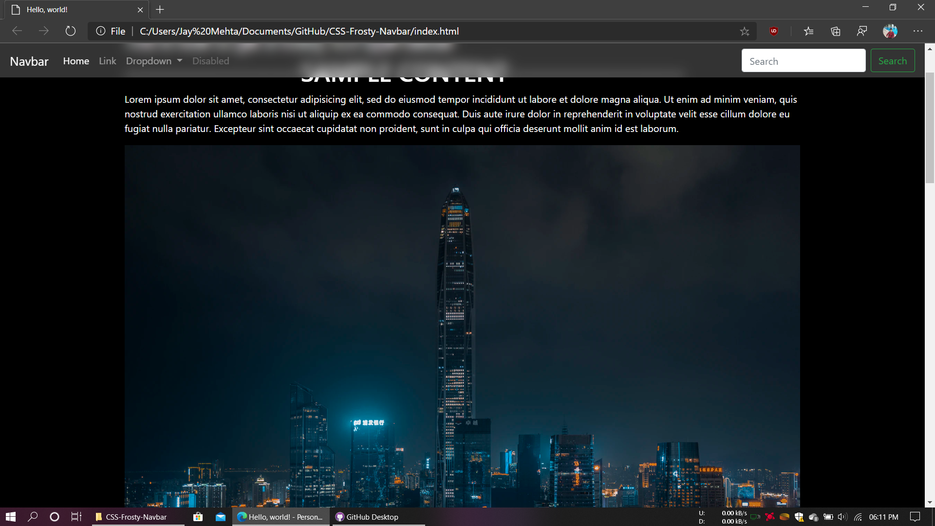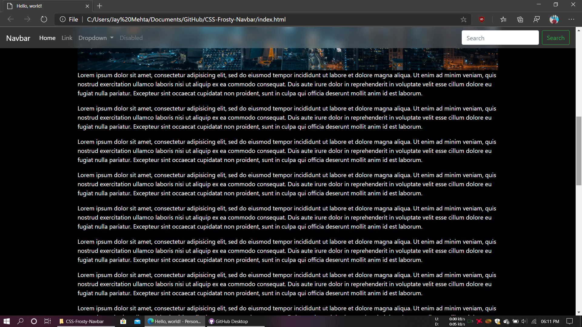 CSS-Frosty-Navbar See live preview at Codepen Give iOS like frost effect to your Bootstrap navbar Supported by modern browsers only (Edge, Safari and Chrome tested.) See compability chart